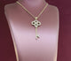 Handfinished 14k yellow gold diamond set key pendant, made in our workshop. The pendant is set with 0.20cts of round brilliant cut diamonds, quality FG / VS-SI1. The pendant comes with a 9k yellow gold curb link pendant chain, 45cm in length.