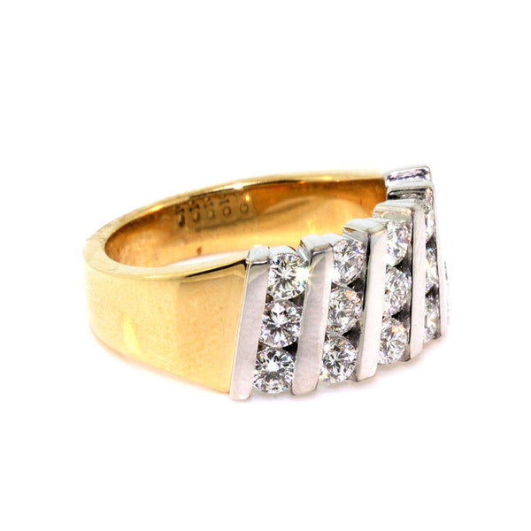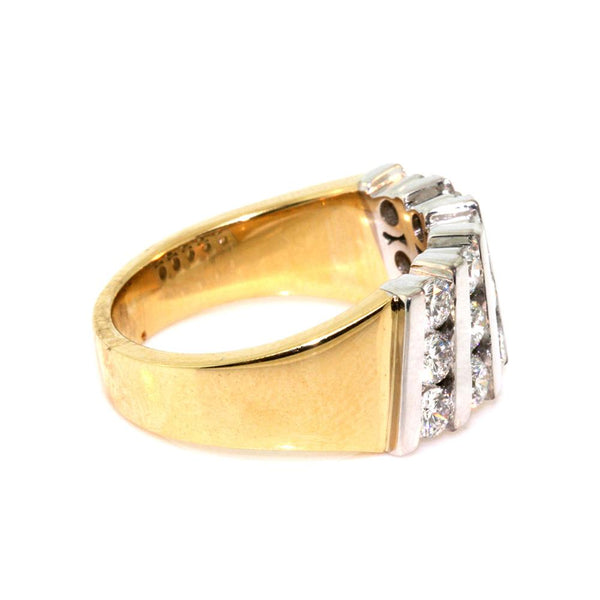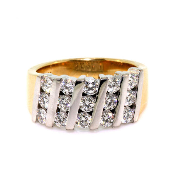 18k yellow and white gold diamond dress ring. The ring is set with 1.1cts of round brilliant cut diamonds, quality FG colour and VS-SI1 clarity.