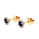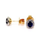 18k yellow and white gold halo stud earrings set with Ceylonese sapphires and diamonds. The earrings are set with 0.89cts of oval sapphires and 0.22cts of round brilliant cut diamonds, GH colour, SI clarity.