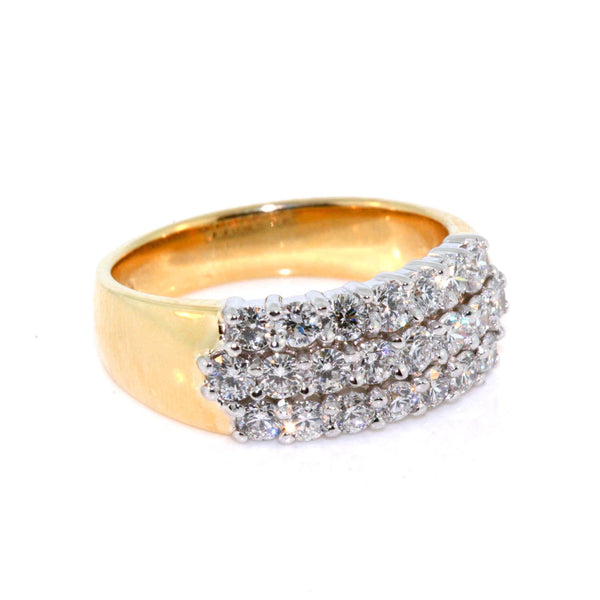 18k yellow and white gold diamond dress ring, set with 1.3cts of round brilliant cut diamonds, FG/VS-SI. This ring is made to order in the required finger size.