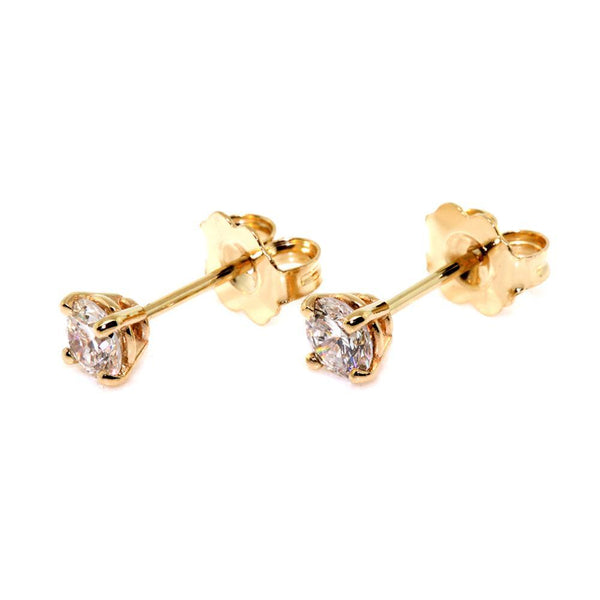 14k yellow gold four claw diamond stud earrings. The earrings are set with 2 = 0.44cts in total of round brilliant cut diamonds, quality GH / I1.
