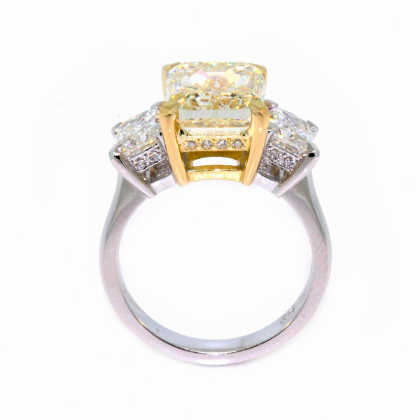 Centre diamond: 5.14ct natural fancy light yellow radiant cut diamond, VS2 clarity, Gemlab diamond report.