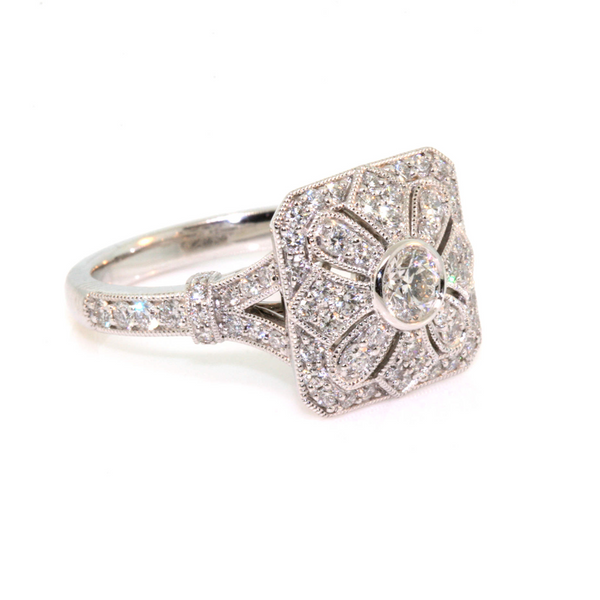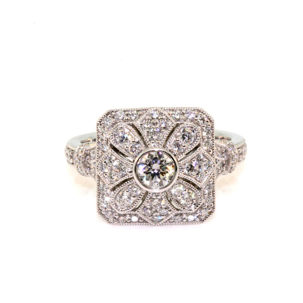 18k White Gold Diamond Set Art Deco Style Dress Ring set with 1.15cts of round brilliant cut diamonds, FG colour, SI1-2 clarity.