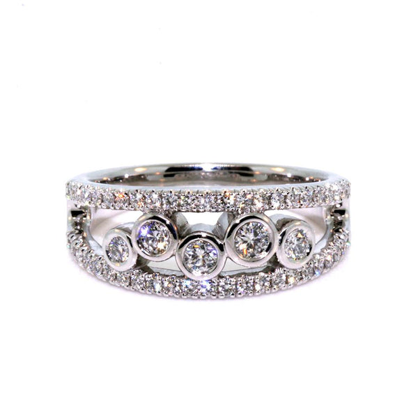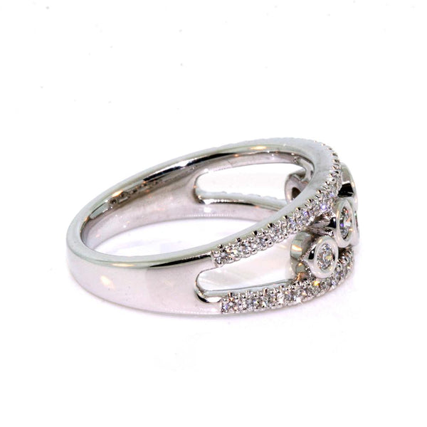 18k white gold diamond bubble ring. The ring is set with 0.60cts of round brilliant cut diamonds, quality FG / VS-SI. This design is made to order in the required finger size.