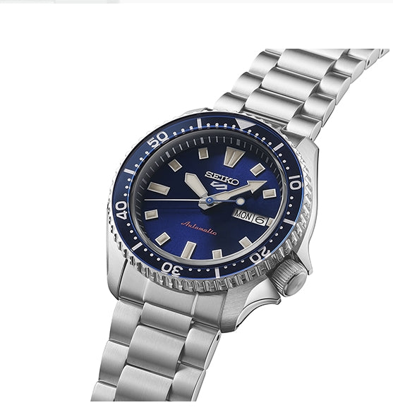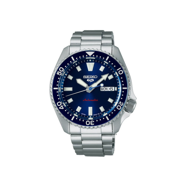 Gent's Seiko 5 Sports SKX Series Stainless Steel 42.5mm Case and Bracelet Blue Bezel and Dial See-Through Case Back 100m Water Resistant Day / Date Automatic Watch.