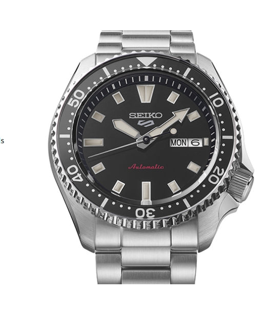 Gent's Seiko 5 Sports SKX Series Stainless Steel 42.5mm Case and Bracelet Black Bezel and Dial See-Through Case Back 100m Water Resistant Day / Date Automatic Watch.
