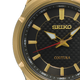Gents Seiko Coutura Yellow Gold PVD on Stainless Steel 42mm Case and Bracelet Black Dial Red Second Hand Sapphire Crystal Glass Date 100m Water Resistant Quartz Watch.